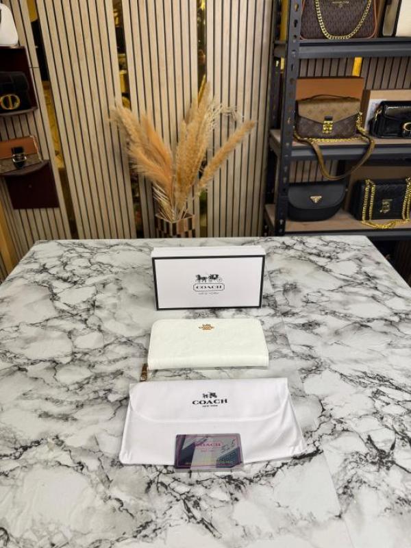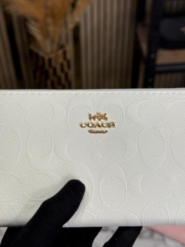 Home Women Wallet COAC_H EMBOSSED ZIP WALLET WITH GOLD HARDWARE INCLUDES BOX AND DUST BAG (CD002-WHITE)